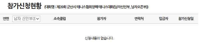 이어서 테린이 대회의 참가신청현황을 들어가 봤습니다.