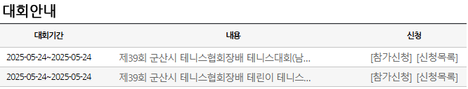 바로 군산시 테니스협회 홈페이지를 확인해 봤습니다.
