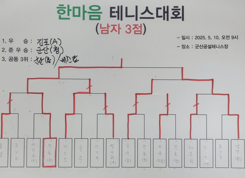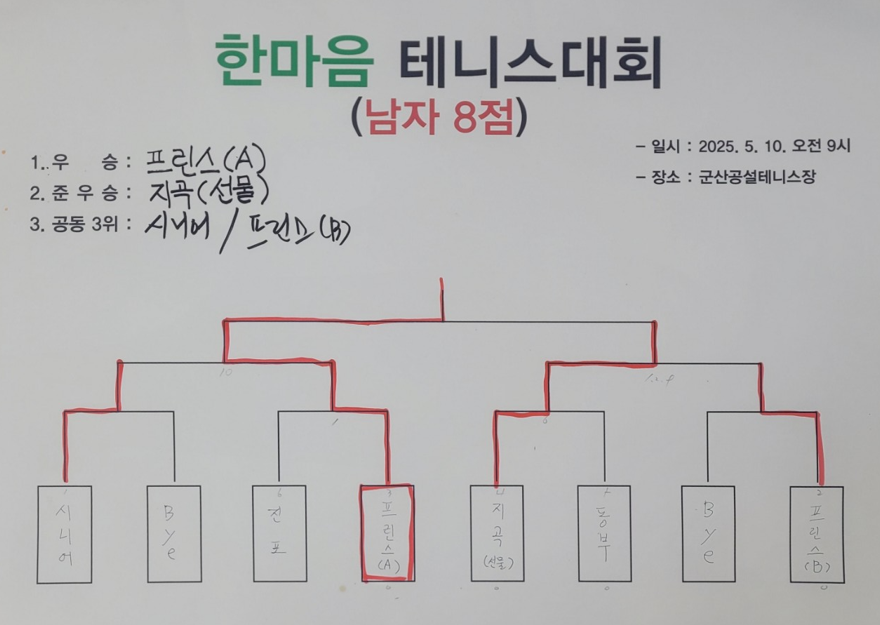 우리 클럽이 모두 탈락했고, 제 몸 상태가 그리 좋지 못하여 탈락하자마자 코트에서 퇴청한 관계로