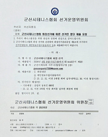 '군산시테니스협회 회장선거에 따른 선거인 명단 제출 요청'이었고