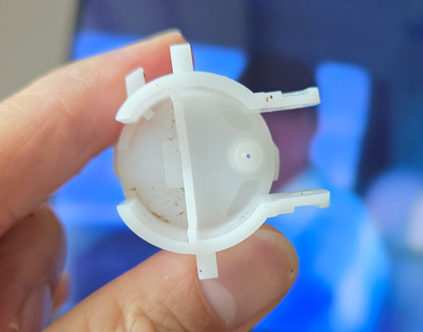 볼탑 부품의 최상단부에 위치한 부품(부레 구조물이 장착되는)에 있는 작은 구멍에 이물질이 낀다면?