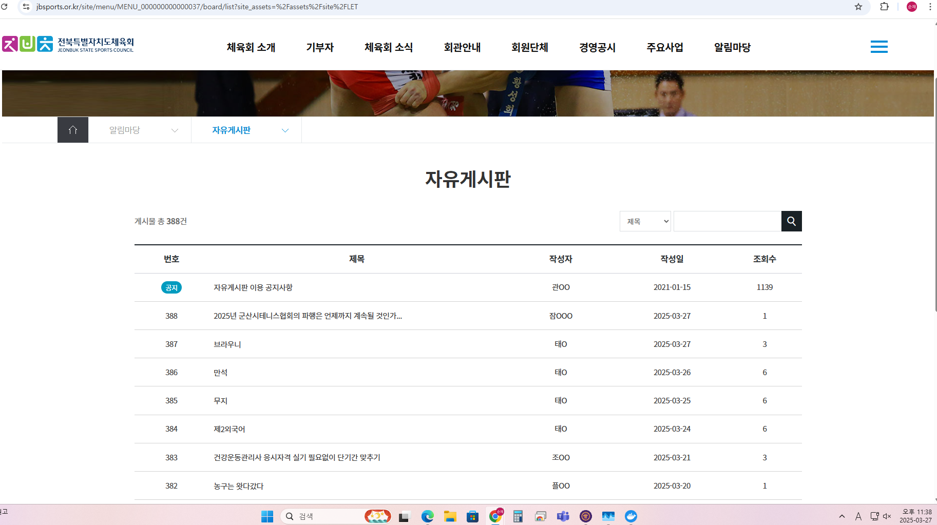 총 4곳 중 글을 남길 수 있는,, 의사 표현을 할 수 있는 곳은 마지막에 전북특별자치도 체육회 홈페이지뿐이었네요.