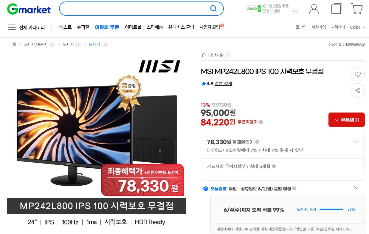 쿠폰 먹이면 대략 74,000원에 구매 가능하겠더군요.
